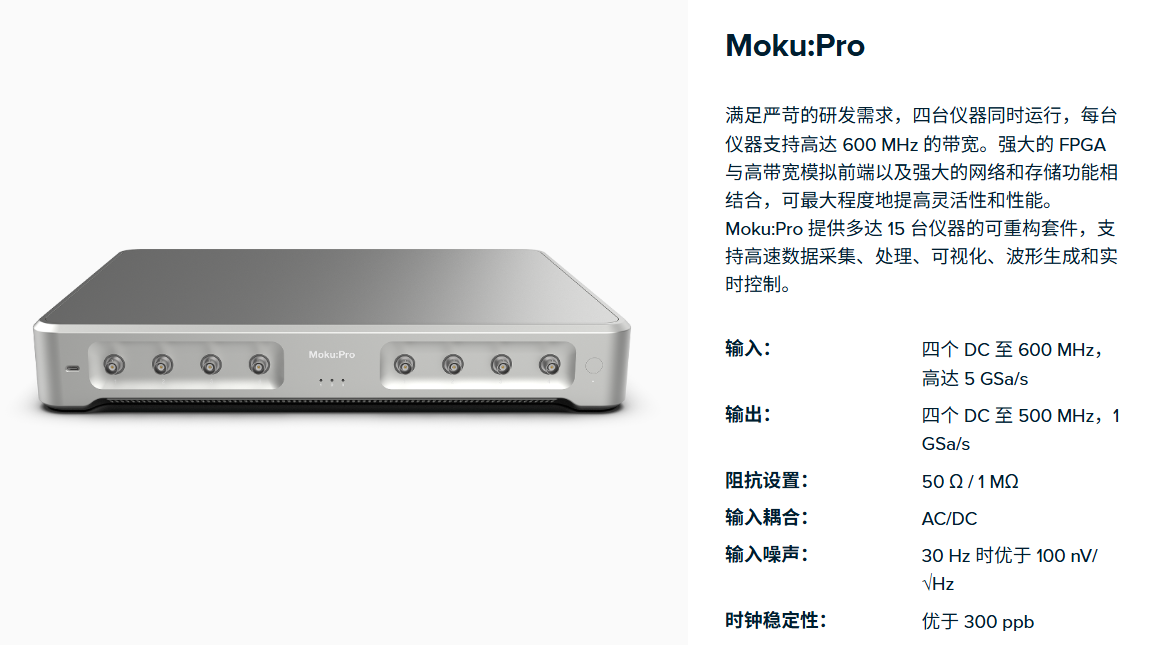 Moku:Pro 以核心电子测试设备为基础,通过全面的仪器套件提升实验水平。凭借多仪器测试功能、先进的控制和特性分析以及用户可编程的 FPGA,您所需的仪器可立即使用。最多可同时使用四台仪器进行测试,从而简化测试流程并减少设置复杂性。直观的软件与强大的硬件相结合,意味着您已拥有合适的工具。