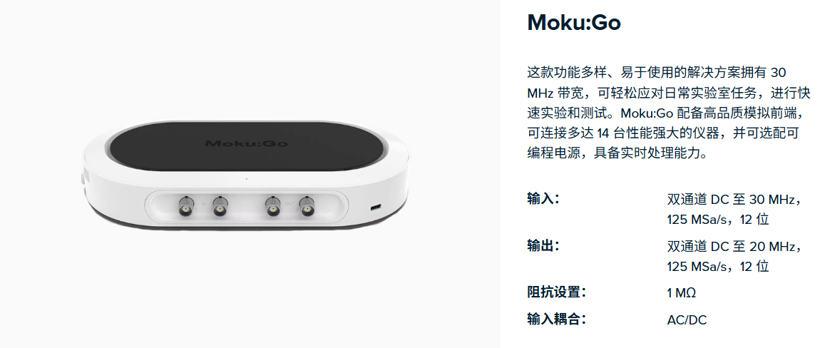 Moku:Go 将紧凑的硬件设计与直观的软件相结合,为复杂的应用提供必备的测试工具 — 所有这些都在一个设备中。 从音频和电力电子到模拟和数字电路设计,使用 Moku:Go 可以灵活轻松地探索和测试原理。