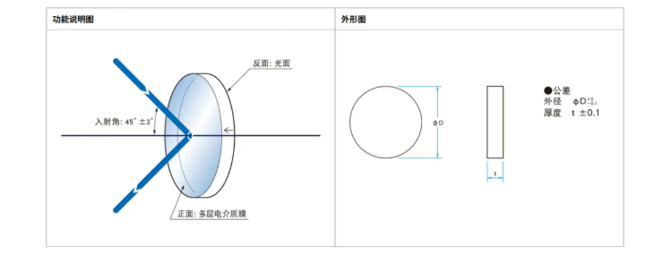 - 多层电介质膜因为入射光束的偏光状态不同其反射率波长特性将会有改变。P偏光与S偏光相比,反射率变低,反射谱区变窄。