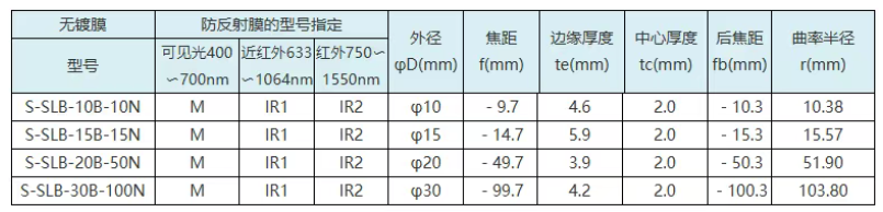 SigamkokiS-SLB-N,经济型平凹透镜,S-SLB-B-N,经济型双凹透镜型号汇总列表