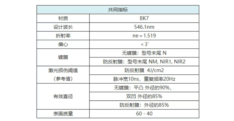 表面质量仅次于球面凹透镜(SLB-N)的经济型透镜。可用于照明或观察等,表面质量要求不很高的光学系统。除表面质量外,其他技术指标与球面凹透镜(SLB-N)相同。如果不是用于激光高精度实验,推荐使用本系列透镜。经济型BK7球面凸透镜包含2种类型:平凹透镜,双凹透镜。除没镀膜的产品外,还提供镀了可见光/近红外/红外用防反射膜的标准透镜系列