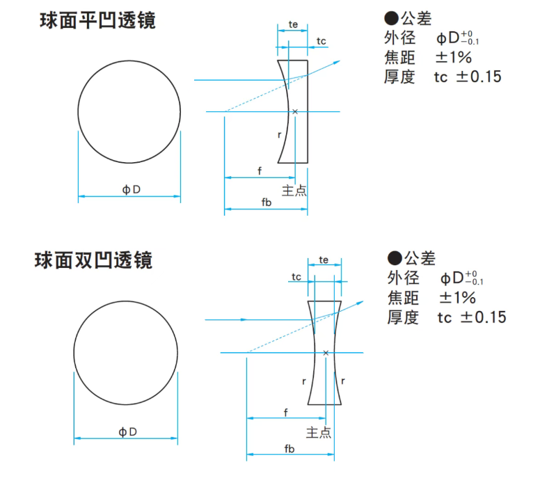 -西格玛光机球面平凹透镜,球面双凹透镜都有色差,其焦距随波长变化。各波长的焦距请参考网页上的“焦距随波长变化特性数据”