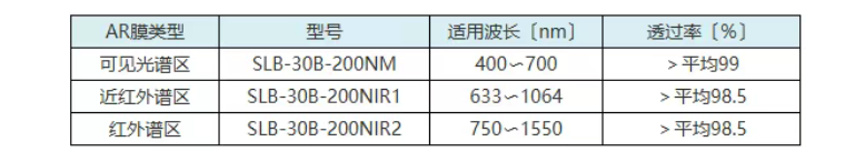 【例】S-SLB-30-200M透镜指定近红外用(633〜1064nm)的防反射膜时